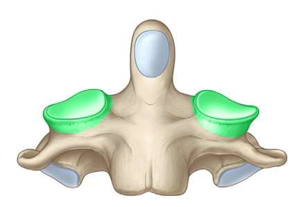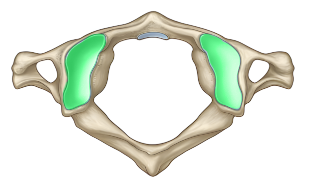 - Төменгі буын беттері - үшінші мойын омыртқасымен байланысады