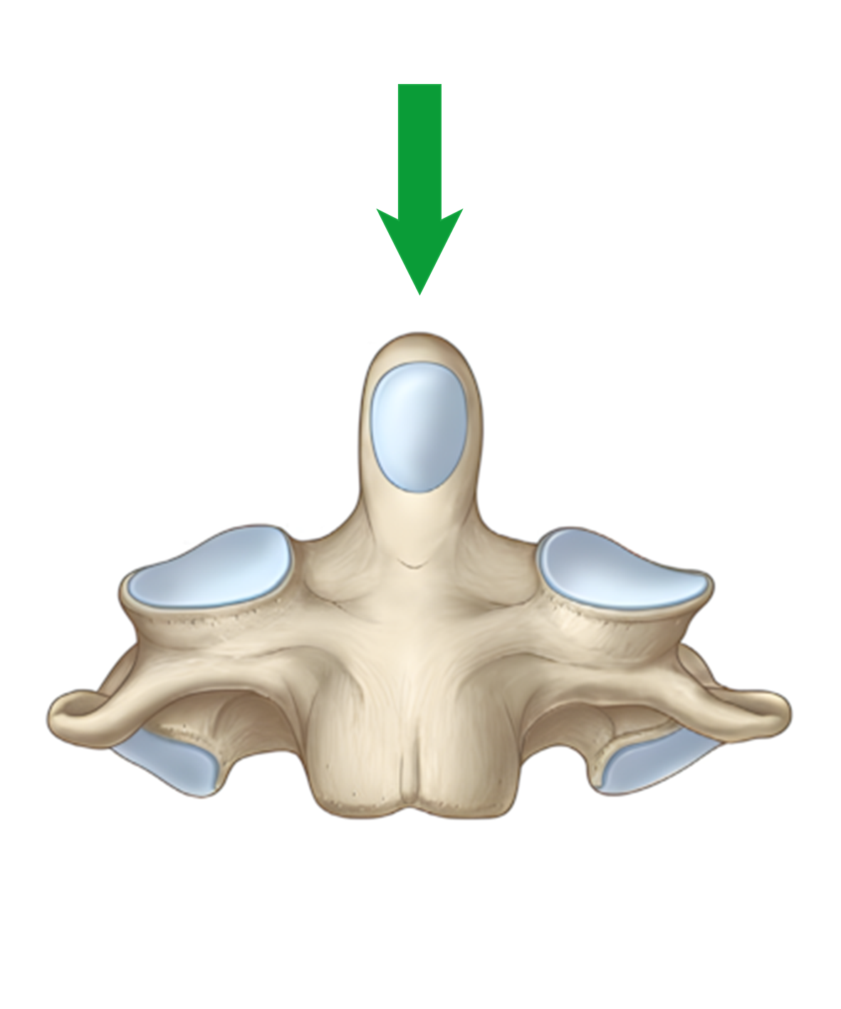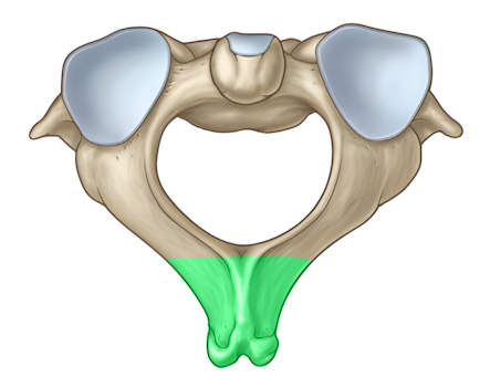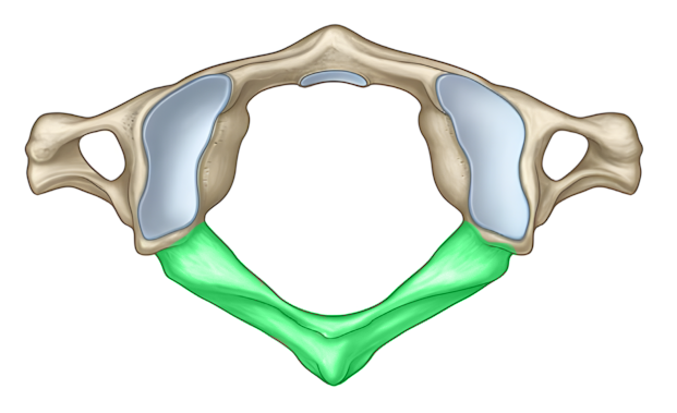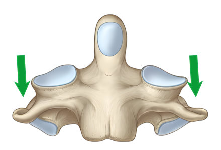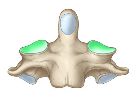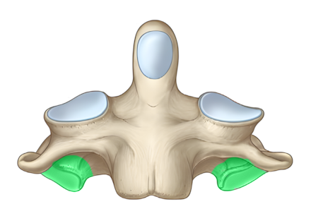 басқа мойын омыртқалары секілді көлденең өсінділер (processus transversus) бар және оларда омыртқа артериясы өтетін көлденең тесіктер (foramen transversarium) бар екенін ұмытпау керек .