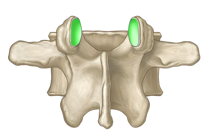 төменгі буын өсіндісі (processus articularis inferior) онда төменгі буын беті (facies articularis inferior) олар керсінше сыртқа қарап орналасады