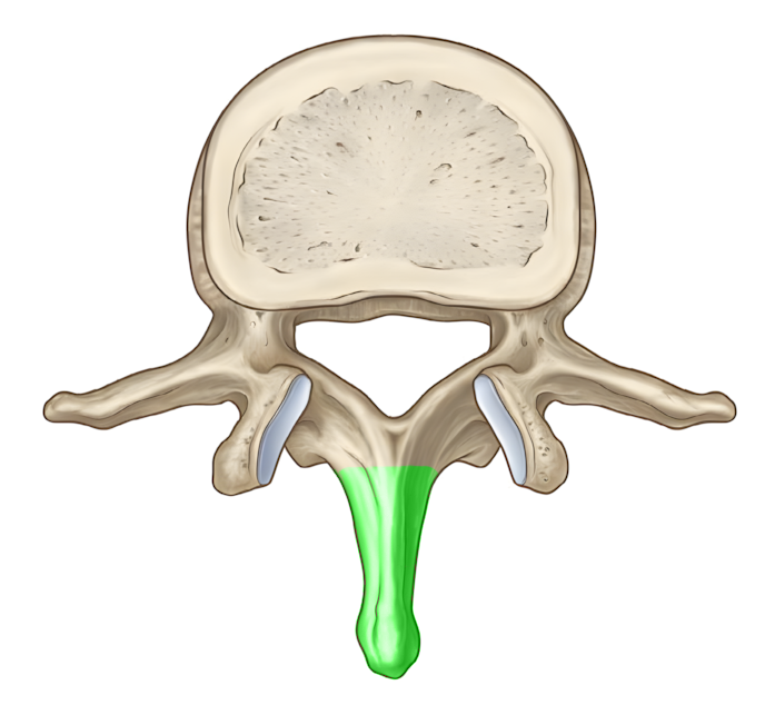 Сүйір өсінді (processus spinosus) тура артка карай бағыталған, буын өсінділері сагиталды орналасқан.